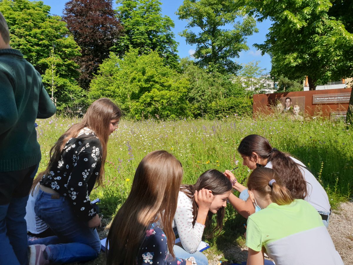 Der Themenkomplex „Grünland“ ist im LehrplanPLUS Natur und Technik für die 5. Jahrgangsstufe verankert. Im Botanischen Garten der Stadt Burghausen erkundeten die beiden 5. Klassen jeweils einen ganzen Vormittag lang die Flora und Fauna einer Wiese. Pflanzen und Tiere wurden bestimmt, Untersuchungen zu verschiedenen Umweltfaktoren (z.B. Temperatur, Belichtungsstärke, Boden) wurden durchgeführt und in einem Protokoll dokumentiert. Aber auch spielerische und künstlerische Aspekte kamen nicht zu kurz, so dass sich die Kinder dem Thema „Grünland“ aus unterschiedlichen Perspektiven nähern konnten. Der Exkursionstag hat Spaß gemacht.