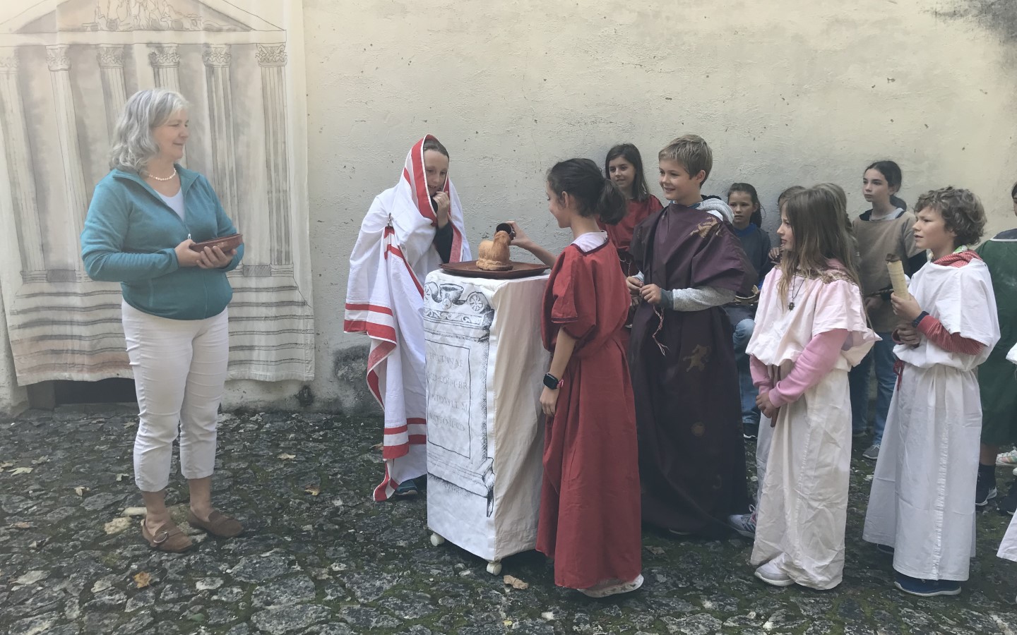 In der Früh des Folgetages gingen wir ausgeschlafen zum Frühstück. Nach dem Frühstück versammelten wir uns im Innenhof und kurz darauf startete die Heimfahrt. Im Bus verkündeten die Tutoren, wer bei den Mädchen und bei den Jungs beim Zimmerwettbewerb gewonnen hatte, denn die Tutoren hatten am Vortag unsere Zimmer inspiziert. Etwas später kamen wir am Römermuseum in Kipfenberg an. Dort wurden wir für die Führung in 2 Gruppen eingeteilt, in die A-Klasse und in die B-Klasse. Jede Klasse hatte ein anderes Thema, beide waren echt cool. Zum Schluss durften wir sowohl in unserem Opferworkshop als auch im Thermenworkshop selbst etwas basteln und mitnehmen. Dann ging die Fahrt weiter und nach einer Weile kamen wir am Stadtplatz in Burghausen an. Alle haben sich gefreut, ihre Eltern wieder zu sehen.