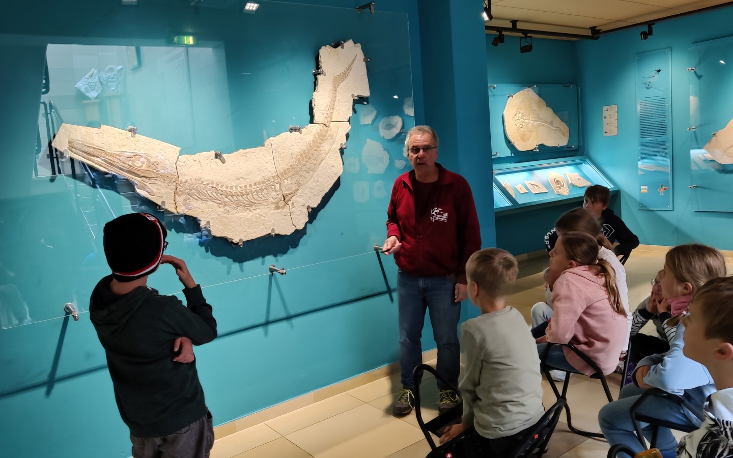 Der erste Tag, unsere Reise beginnt: Als Erstes fuhren wir zu einem tollen Naturkundemuseum, wo wir ein Quiz in kleinen Gruppen machten. Anschließend ging es weiter zu einem Fossilienmuseum in Solnhofen, wo uns nette Herren durch die Ausstellungsstücke führten und uns alles gut und deutlich erklärten. Es hat allen Kindern gut gefallen. In Begleitung der gleichen Herren und unter deren Anleitung konnten wir im Steinbruch mit Hammer und Meißel schöne Fossilien ausgraben. Darunter waren Ammoniten (das sind urzeitliche Tintenfische), Wasserlilien, Mineralien und sogar ein paar kleine Fische. Als wir dann an der Jugendherberge angekommen waren, gingen wir zum Essen zum Speisesaal hinunter und es gab ein leckeres Buffet mit verschiedenen Speisen. Etwas später sind wir in die verschiedenen Gesellschaftsräume gegangen und spielten viele Spiele, die die Tutoren sich ausgedacht hatten. Jedes Kind, das bei einem Spiel gewann, bekam zur Belohnung etwas Süßes.