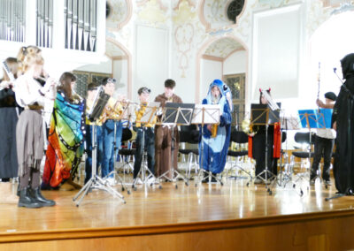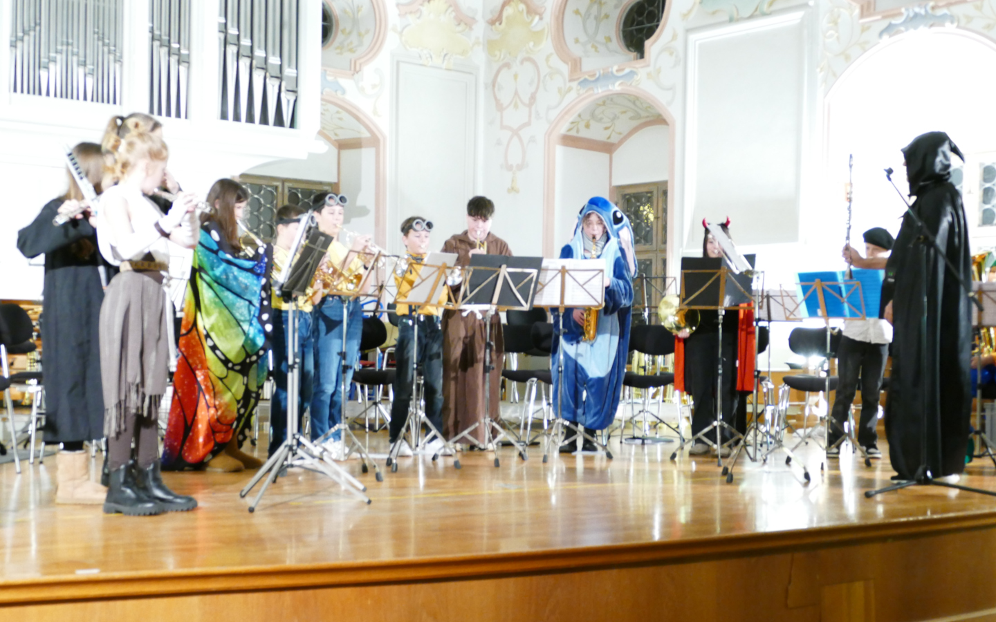 Am 11.02.2026 gestalteten die Ensembles Juniororchester Bläser, Bläsergruppe Kl. 8-13 und die Kumax Big Band ein unterhaltsames Faschingskonzert in der Großen Aula in lockerer Atmosphäre. Viele allgemein bekannte Hits, auch zum Mitsingen und Mitpfeifen, sorgten beim Publikum für beste Laune.