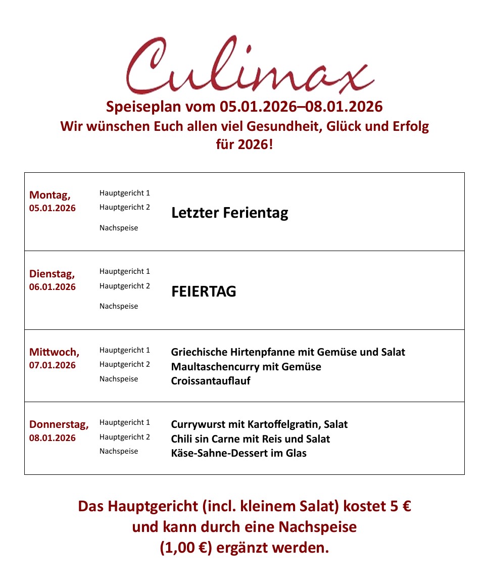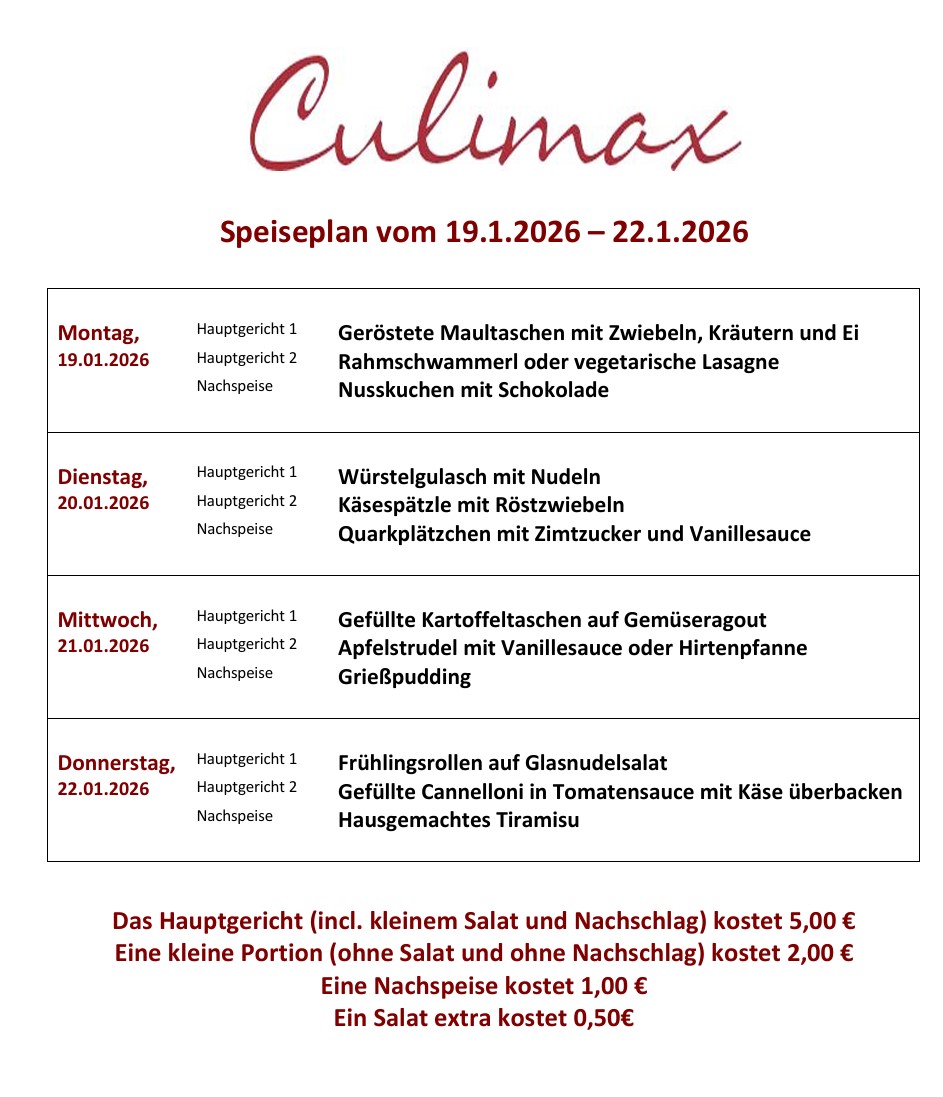 - Alle Speisen bereitet das Küchenteam des Culimax täglich frisch zu.